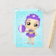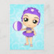Preciosa chica de chibi lista para un fiesta de piscina con su gorra de nado y su postal de bola. Incluso un anillo de nado para mantenerla a flote. ¡Ideal para un fiesta de piscina para chicas! Maravillosa postal chibi.
