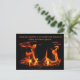 Esta postal representa la energía abstracta del fuego en una estufa de leña. Las llamas naranja, dorada y amarilla aparecen como personajes de baile alegres. Están despegados por un fondo negro. La cita es del filósofo griego presocrático, Heráclito de Éfeso, que vivió desde el c.535-c.475 a.C. Dice: ... siempre fue y será: un fuego vivo, con medidas que se reavivan, y medidas que se van a tomar. Se puede personalizar o quitar.