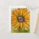 Girasol pintado de gran tamaño con fondo de color de agua verde.Expresión alegre, trazos atrevidos sobre pétalos pintados a mano. Gran diseño para las tarjetas, bien deseadas, decoración casera y más.