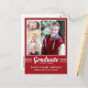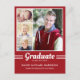Esta postal de invitación de graduación inspirada en el deporte cuenta con un diseño de 4 fotos y un divertido diseño atlético. En la parte delantera, elige cuatro de tus fotos favoritas para la plantilla: tres fotos más pequeñas y una foto vertical grande. Debajo de las fotos, la palabra "Graduado" está escrita en escritura deportiva y enmarcada por rayas blancas contra un fondo rojo. Añada el nombre del graduado, el año de graduación y la escuela al fondo. En la parte posterior de la tarjeta postal de graduación, puede escribir un mensaje personalizado a los destinatarios e incluir detalles del fiesta de grado.