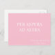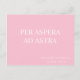 Una postal motivacional con la cita latina 'per aspera ad astra'. Una frase popular en la Antigua Roma, la traducción es "a través de la adversidad a las estrellas". La letra tiene un toque clásico que evoca las inscripciones públicas romanas y la traducción al inglés está en un tipo de letra opuesto. La postal tipográfica presenta texto blanco crudo sobre un fondo rosado.