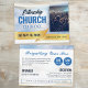 Una atractiva postal profesional que es ideal para eventos eclesiásticos, pero lo suficientemente genérica para ser para cualquier evento o conferencia. La parte delantera tiene un fondo del cielo descolorido, con toques dorados y cintas por todas partes, y una imagen cuadrada editable en la parte delantera. Toda la información se puede editar en la tarjeta postal, incluyendo la información del billete en los círculos. Los colores de fuente se pueden cambiar en el Editor.