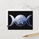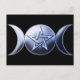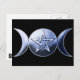 Triple símbolo de diosa, tres fases lunares. Luna llena con pentagrama, cera y luna menguante. azul místico y translúcido sobre negro. La mujer, la madre, la doncella y el crone. Regalo para Wiccans y neo-Pagans.