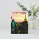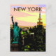 Esta es una vista nocturna clara de la hermosa ciudad de Nueva York, como si estuviera pintada con un cielo rosa y naranja, puede ser una tarjeta de viaje agradable. Se puede agregar o quitar texto del poster.