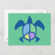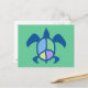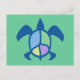 Una tortuga marina azul con un símbolo de paz de cuatro colores en la espalda. Arte de tortugas marinas.