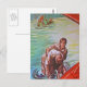 Una vintage carta de juego que representa un avión de época estrellado con dos pilotos rescatados