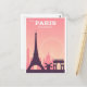 A cualquiera le encantaría recibir esta postal de poster de viajes rosa con un ilustracion retro de los monumentos de París, Francia, incluida la Torre Eiffel.