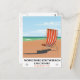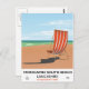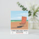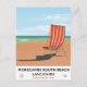 Poster costero Morecambe South Beach Lancashire, poster de viajes vintage de una tumbona a rayas en una playa de arena.