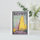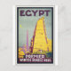 Poster de viajes de época que representa una pirámide en Egipto y anuncia el destino como una cita de invierno.