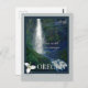 Un cuadro digital de una cascada que se encuentra a lo largo de la ruta de retorno de las Cataratas Multnomah en el área de escena del desfiladero del río Columbia en Oregón. El número blanco en la esquina superior es el año en que Oregón se convirtió en estado. El lema del estado es la letra blanca en el centro de la pintura, "Ella vuela con sus propias alas". Al final de la pintura hay una flor blanca de trillium junto a Oregón con letras blancas. El cuadro se completa con un sencillo borde azul oscuro. Derechos reservados ©2023 Kimberly J Tilley.
