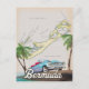 Mapa ilustrado de Bermudas en un hermoso estilo vintage con un viejo auto vintage.