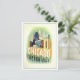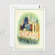 Esta postal es una reproducción de un afiche de viajes vintage de Chicago, que muestra la palabra "Chicago" reflejada en el Lago Michigan.