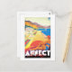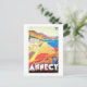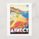 Esta postal es una reproducción de un afiche de viajes vintage de PLM publicitando Annecy en Francia.