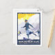 Esta postal es una reproducción de un poster de viajes vintage que anuncia deportes de invierno como patinaje sobre hielo en Chamonix, Francia.