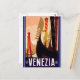 Las góndolas Guay en el canal de Venecia y la palabra Venecia, Venecia en italiano, hacen una gran postal retro vintage.