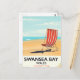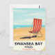 Poster costero de Swansea Bay Wales en un estilo vintage con una tumbona de rayas vintage en la playa de arena durante las vacaciones de verano.