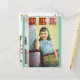 Disfrute de esta vintage postal de Shanghai, China, de principios del siglo XX. Estas imágenes, producidas principalmente en Shanghái en las décadas de 1920, 1930 y 1940, mostraron una mezcla de diseño oriental y occidental, así como representaciones de mujeres modernas y belleza de Shanghái. Este poster de cine de 1941 presenta una joven belleza con blusa azul y falda verde con el pelo hacia atrás en un arco rosado. En la parte trasera de nuestras postales se encuentran las fronteras chinas de la época del arte deco vintage y los farolillos rojos diseñados con elementos de www.vecteezy.com.