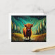 Tarjeta postal de hermosa vaca de las Highlands en prado forestal. Personalice fácilmente el mensaje según sus necesidades.
