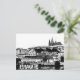 Postal: El panorama de Praga con detalles sobre la Catedral de San Vitus, el Castillo Hradcany y la ciudad vieja sobre el río Vltava - dibujo de arte digital en blanco y negro. Fotografía original/Arte/Diseño de work4dream.