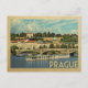 Diseño de la República Checa de Praga al estilo Viaje Vintage con hermosas vistas al río de la ciudad con puente.