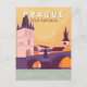 Diseño de arte vectorial retro de Praga. Llamada la "Ciudad de las Cien Arañas", es conocida por su Plaza del Casco Antiguo, el corazón de su núcleo histórico, con coloridos edificios barrocos.