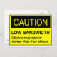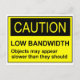 Este signo de advertencia amarillo de bajo ancho de banda advierte que "los objetos pueden aparecer más lentamente de lo que deberían". Ese es el efecto de no tener suficiente velocidad de línea o de red. Todo lo que aparece en la pantalla del ordenador se reduce a poco para resolverse. Luego, de nuevo, algunos de sus compañeros de trabajo también pueden ser de baja variedad de ancho de banda y también parecen estar en cámara lenta.
