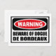Cuidado con la tarjeta postal DOGUE DE BORDEAUX que puedes personalizar en www.WarningSignShirts.com y presenta una señal de advertencia roja y negra y BEWARE OF DOGUE DE BORDEAUX en negrita negra para avisar al mundo. También puede personalizar su propia tarjeta postal con el texto que desee.