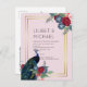 Hermoso pavo real con flores azul turquesa y azules, borgoña, y hojas de salvia verdes destacan en estos artículos de boda de otoño, invierno. Parte de una colección más grande que incluye invitaciones de boda económicas, anuncios de "guarda la fecha", respuestas, tarjetas de agradecimiento con foto, regalos para la novia y el séquito nupcial, y más. Para una guía detallada GRATUITA de planificación de boda de invierno, visite weddingdesignchic.com.