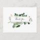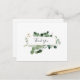 Patrón de vegetación para bodas en verdes, dorado sobre blanco con GRACIAS personalizado en negro. En la parte posterior, agregue un mensaje de agradecimiento (deje espacio para la dirección y el sello). Fácil de personalizar texto, color de texto. Una forma sencilla de decir gracias a sus invitados en una hermosa postal. Mezcle y combine toda la Colección de Bodas de TMCdesigns.
