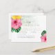 Hermosas y vibrantes flores y hojas tropicales adornan este artículo moderno para una boda con tema hawaiano y luau en la playa de destino. Es parte de una colección más grande que incluye invitaciones de boda económicas, confirmaciones de asistencia, anuncios de "guárdalo", etiquetas y adhesivos para favores, sobres, regalos para el grupo de la boda y la novia, regalos para recién casados a juego y más. Vea la colección adjunta para verlos todos.
