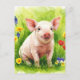 Postal Primavera de cerdo con flores para animales jóvene