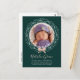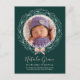 Este dulce anuncio de nacimiento muestra una corona de Navidades rodeando una foto de tu recién nacido. La corona dibujada a mano incluye hojas verdes, bayas rosas, un arco rosado y delicados detalles blancos. A continuación, agregue el nombre de su recién nacido en un guión de caligrafía rosa bonito. La parte delantera de la postal también incluye los detalles del nacimiento del bebé, un mensaje corto y sus nombres. La parte posterior de la postal incluye espacio para escribir un mensaje personal más largo a los destinatarios.