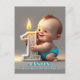 La imagen representa el primer cumpleaños de un bebé varón. El bebé está abrazando una vela encendida celebrando su primer año de vida. El niño muestra una gran sonrisa. Hagamos que esta fiesta sea inolvidable.