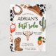 ¡Ensilla! ¿Listo para una fiesta de cumpleaños de rodeo de vaquero? Este diseño presenta elementos temáticos de vaquero como un sombrero de vaquero, herradura, cactus, calavera y un patrón de cuero de vaca o estampado de vaca. Todo el texto es editable en esta invitación de cumpleaños temática de vaquero de tonos neutros. El diseño es neutral en cuanto al género y adecuado para niños o niñas y es totalmente personalizable para un cumpleaños número 1, 2 o para niños mayores. Encuentra artículos que coincidan en mi tienda.