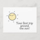 NewParkLane - Tarjeta postal linda para el primer cumpleaños de un bebé, con un pequeño sol de dibujos animados y texto: '¡Tu primer viaje alrededor del sol!' en una tipografía de letra divertida.