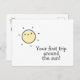 NewParkLane - Postcard lindo para el primer cumpleaños de un bebé, con un lindo personalizado de sol y texto: '¡Su primer viaje alrededor del sol!' en una divertida tipografía de escritura. El trasero tiene un feliz deseo de cumpleaños. Agregue su nombre o texto para un diseño personalizado.