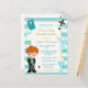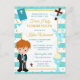 Cálido diseño de la primera comunión azul sagrada del niño de cabello rojo con fondo de rayas azules y confeti de Relieve metalizado dorado. Gráficos de Mujka y KlouiseDigiArt en Etsy.