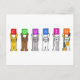 Una hilera de personalizados gatos de diferente color sosteniendo sobre sus cabezas tarjetas cuadradas de colores brillantes que tienen letras en las que se deletrea la palabra ‘Primo'.