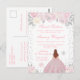 Postal Princesa de cabello marrón de invierno rosa Cumple