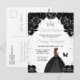 Esta elegante y glamurosa invitación de cumpleaños para sweet sixteen presenta a una bella princesa con cabello castaño en un vestido de gala negro. El texto combina letra manuscrita y fuentes modernas sans serif para un aspecto clásico y sofisticado. Los arreglos florales, la mariposa y el confeti plateado crean la mezcla perfecta de rústico y chic.