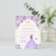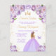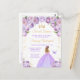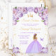Esta elegante y glamurosa invitación de cumpleaños para sweet sixteen presenta a una hermosa princesa con cabello rubio en un vestido de baile de color morado claro. El texto combina letra manuscrita y fuentes modernas sans serif para un aspecto clásico y sofisticado. Los arreglos florales, la mariposa y el confeti dorado crean la mezcla perfecta de rústico y chic.