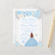 Esta elegante y glamurosa invitación de cumpleaños de dieciséis años de invierno presenta a una hermosa princesa con cabello castaño rojizo y piel clara en un vestido de gala azul. El texto combina la escritura a mano y las fuentes modernas sans serif para un aspecto clásico y sofisticado. Las disposiciones florales, los copos de nieve y el confeti plateado crean la mezcla perfecta de rústico y chic.