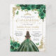 Postal Princesa de oro verde esmeralda Floral Quinceañera