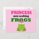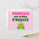 La princesa divertida busca el diseño de ranas con una rana verde adorable.