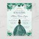 Postal Princesa floral de oro verde esmeralda Quinceañera