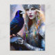 Un moderno diseño de retrato de princesa guerrera de fantasía contemporáneo inspirado en la mitología de los celtas tribales y los vikingos nórdicos con un pájaro cuervo.