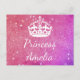 Esta linda postal es rosa, bonito y apta para una princesa. Tiene una corona blanca y se puede personalizar con el nombre de la princesa. Haga clic en el Personalizar It para cambiar el nombre (y el estilo de letra y color, si lo desea).