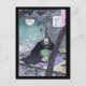 Esta postal japonesa restaurada muestra el laúd beareded de príncipe Semimaru Tuning His teniendo en cuenta una Luna Llena en su retratamiento de la montaña en el soporte Ausaka en el estilo tradicional de Ukiyo-e.