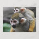 Un mono de ardilla muy lindo aferrado a la espalda de su madre.