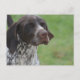 Perro puntero alemán pardo y blanco con expresión dulce.